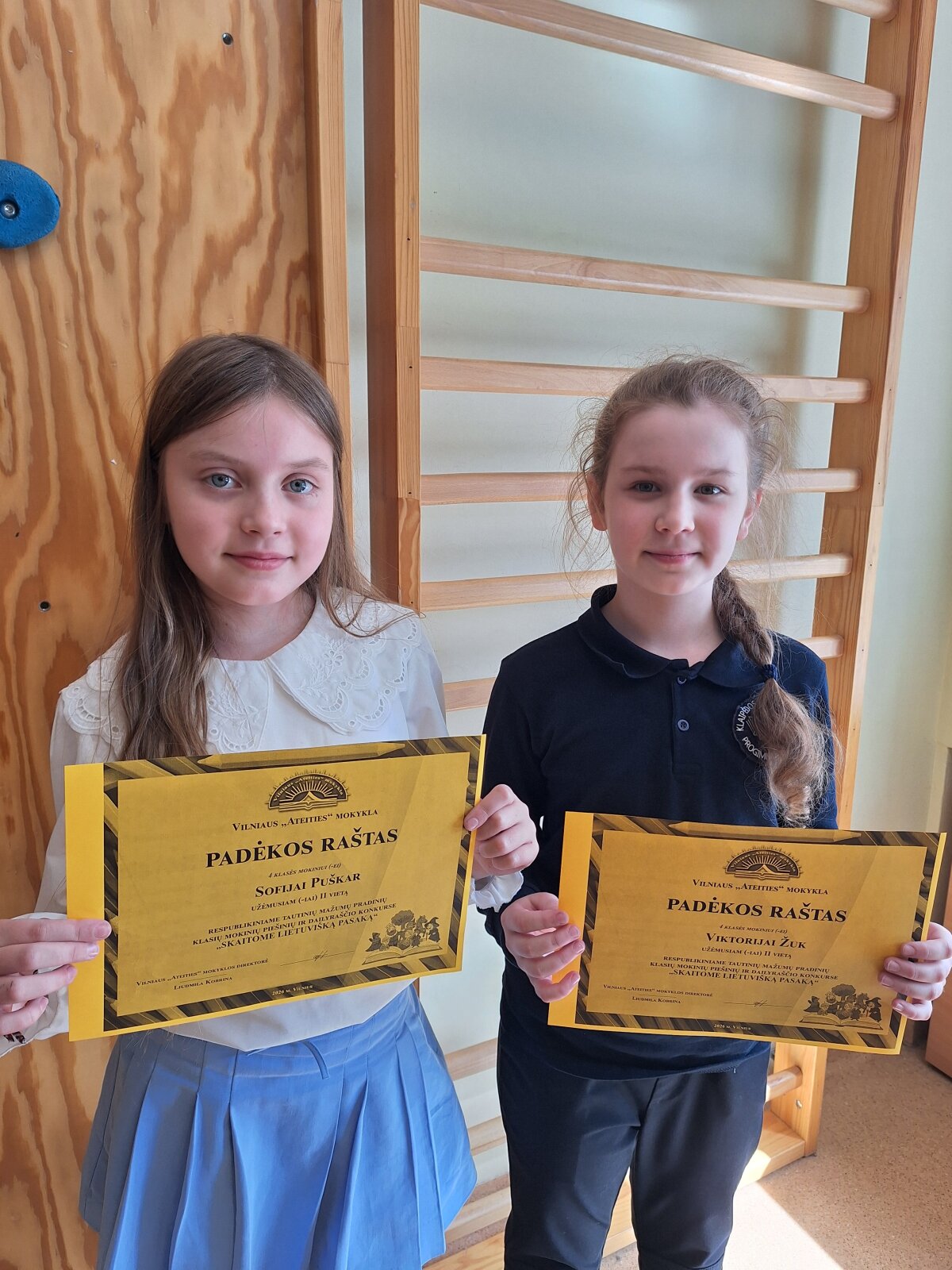 4c klasės mokines Viktoriją Žuk ir Sofiją Puškar Respublikiniame tautinių mažumų pradinių klasių mokinių piešinių ir dailyraščio konkurse „Skaitome lietuvišką pasaką“ užėmus II-ąją vietą!