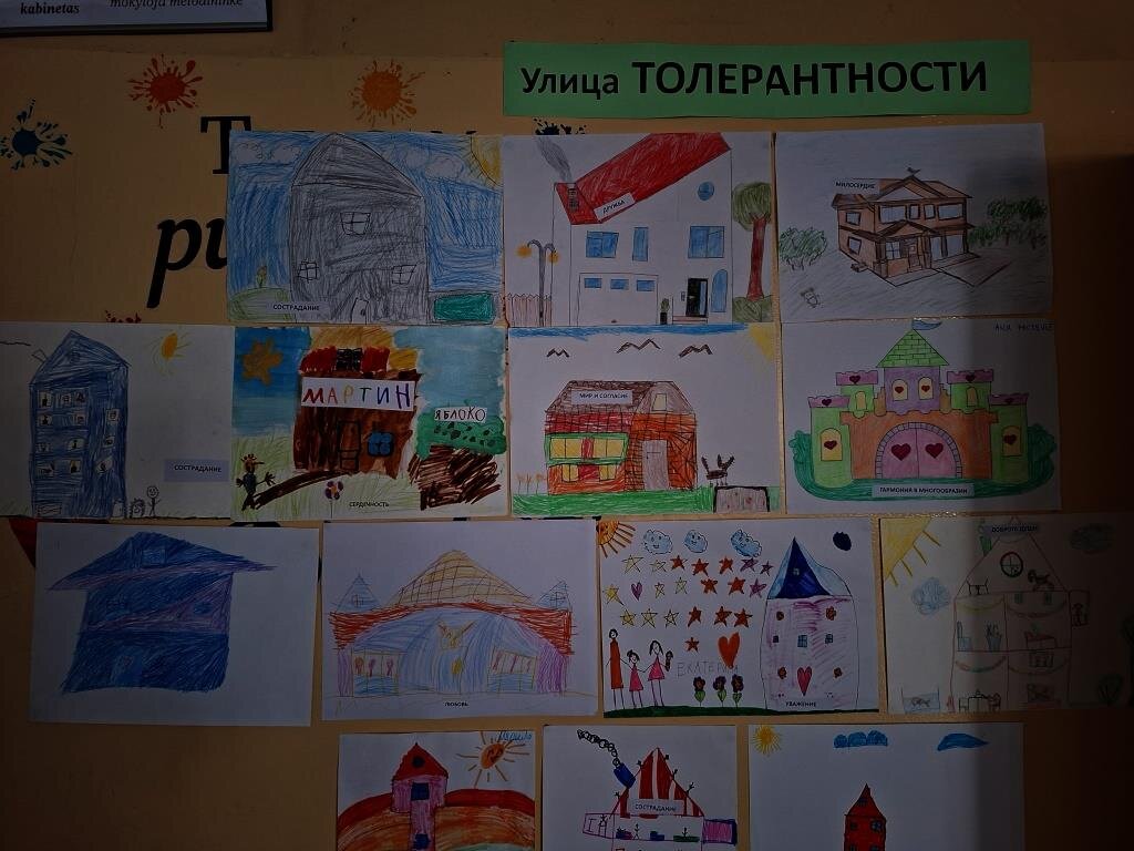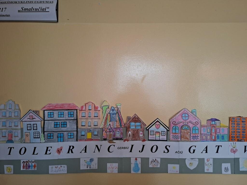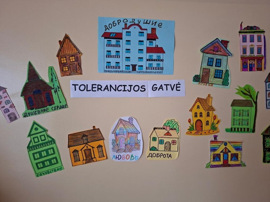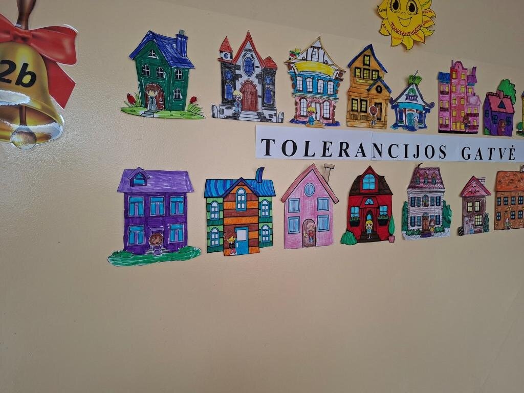 Progimnazijos koridoriais nusidriekė Tolerancijos gatvė. Įvairiaspalviai namai buvo sukurti iš kartoninių dėžučių, piešinių, vaizduojančių gatvę ir gatvės ženklus. Tolerancijos gatvėje, pasak mokinių, gyvena skirtingų tautybių bei skirtingą požiūrį į pasaulį turintys žmonės. „Smalsučių“ grupės vaikai ir 1-8 klasių mokiniai klasės valandėlių metu svarstė ir aptarė kokia turėtų būti Tolerancijos gatvė, kurioje galėtų gyventi skirtingi, gerbiantys vienas kitą, nekreipiant dėmesio į skirtumus, žmonės.