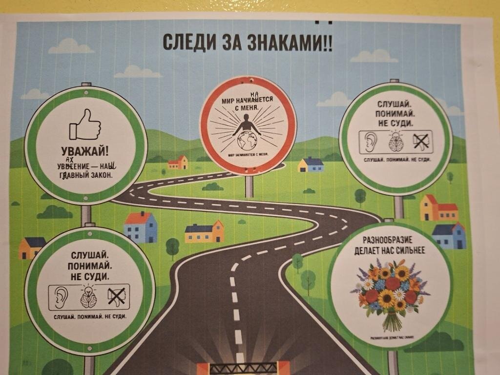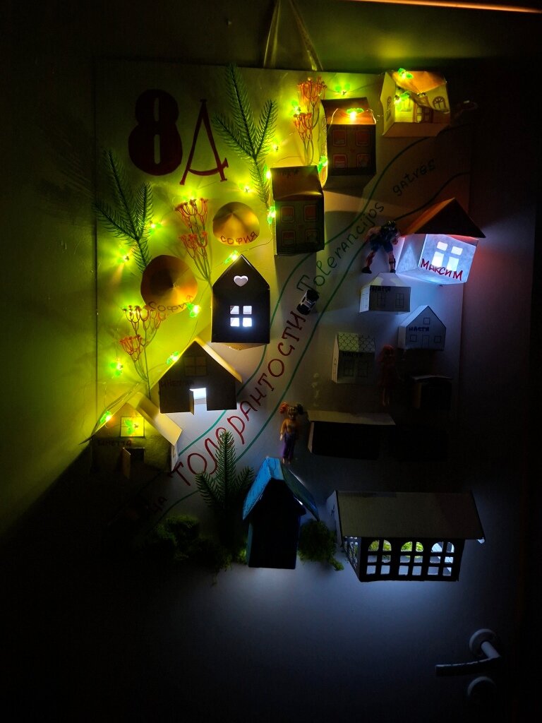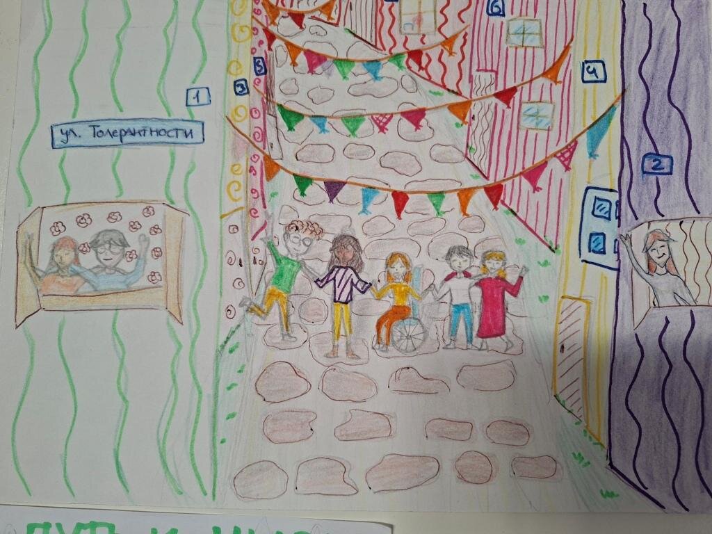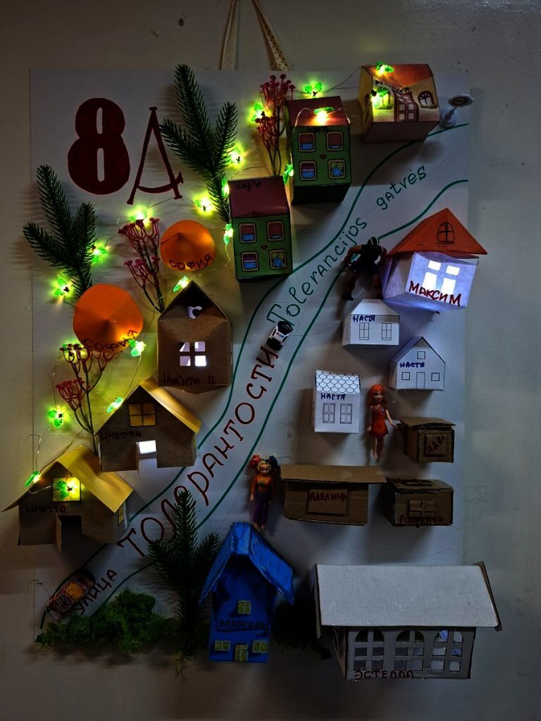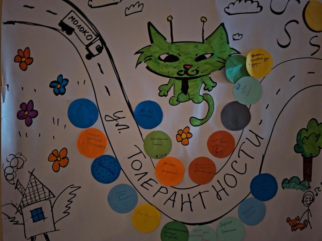 Progimnazijos koridoriais nusidriekė Tolerancijos gatvė. Įvairiaspalviai namai buvo sukurti iš kartoninių dėžučių, piešinių, vaizduojančių gatvę ir gatvės ženklus. Tolerancijos gatvėje, pasak mokinių, gyvena skirtingų tautybių bei skirtingą požiūrį į pasaulį turintys žmonės. „Smalsučių“ grupės vaikai ir 1-8 klasių mokiniai klasės valandėlių metu svarstė ir aptarė kokia turėtų būti Tolerancijos gatvė, kurioje galėtų gyventi skirtingi, gerbiantys vienas kitą, nekreipiant dėmesio į skirtumus, žmonės.