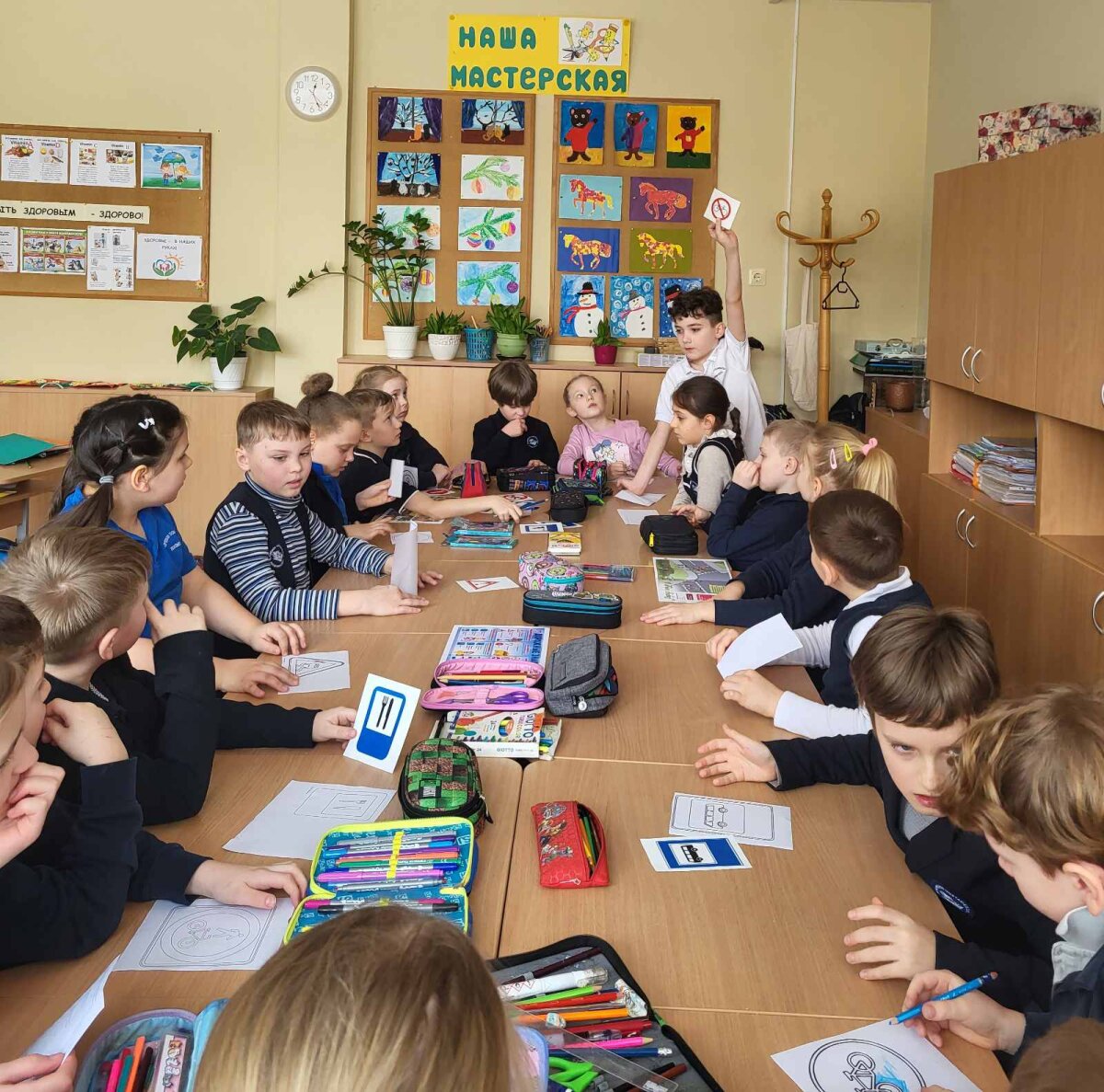 Ypatingo susidomėjimo sulaukė kūrybinės užduotys: dalyviai kūrė plakatus saugaus elgesio kelyje tema, dalyvavo piešinių konkurse „Mes už saugų kelią“. Darbai puikiai pavyko – jie ryškūs, turiningi ir primygtinai visiems primenantys apie saugaus elgesio kelyje svarbą.