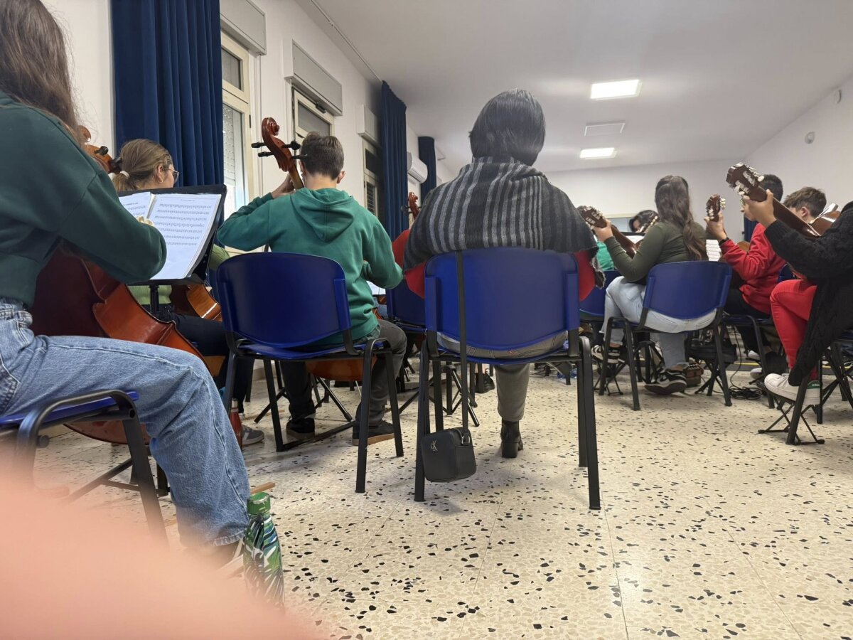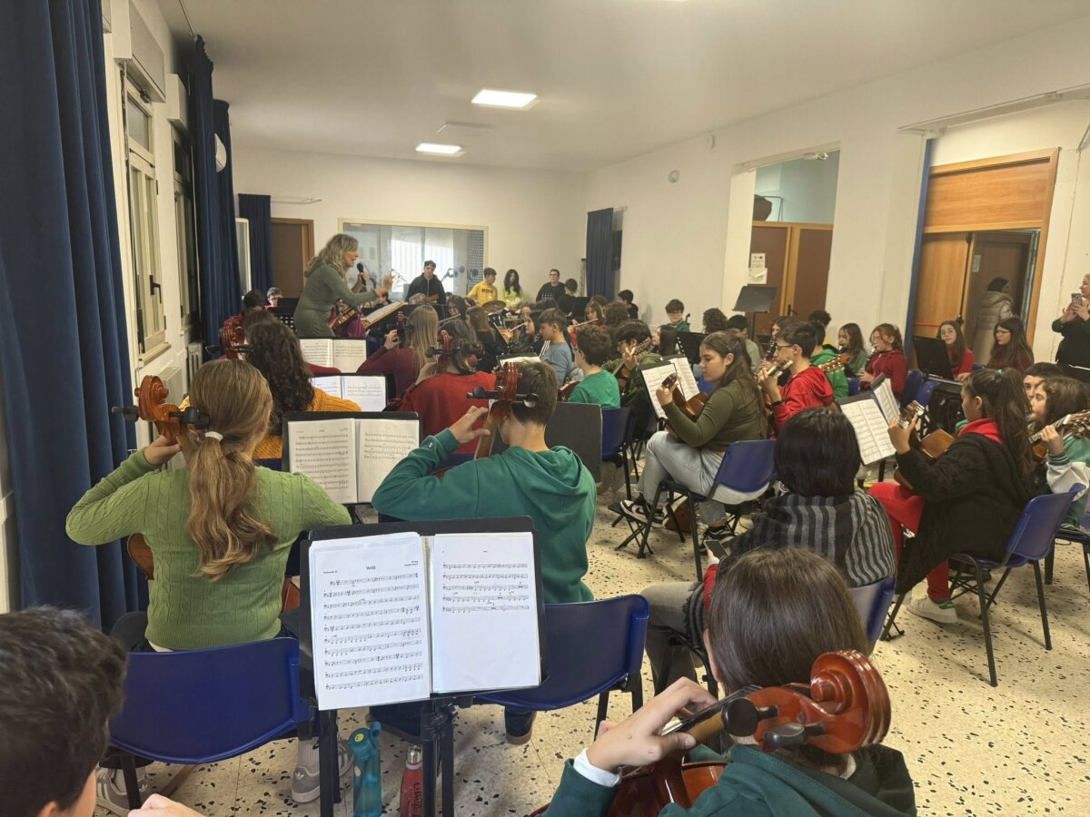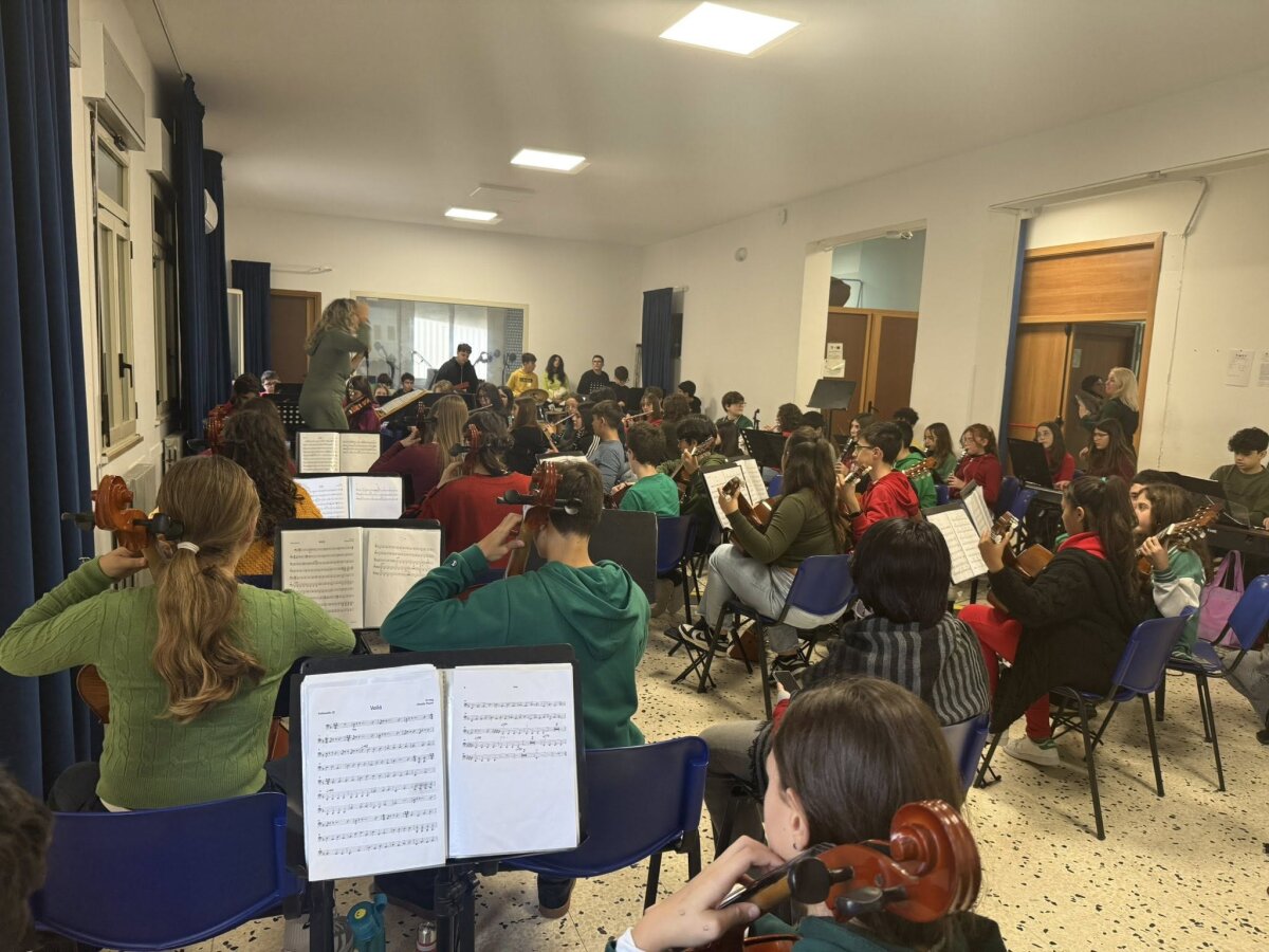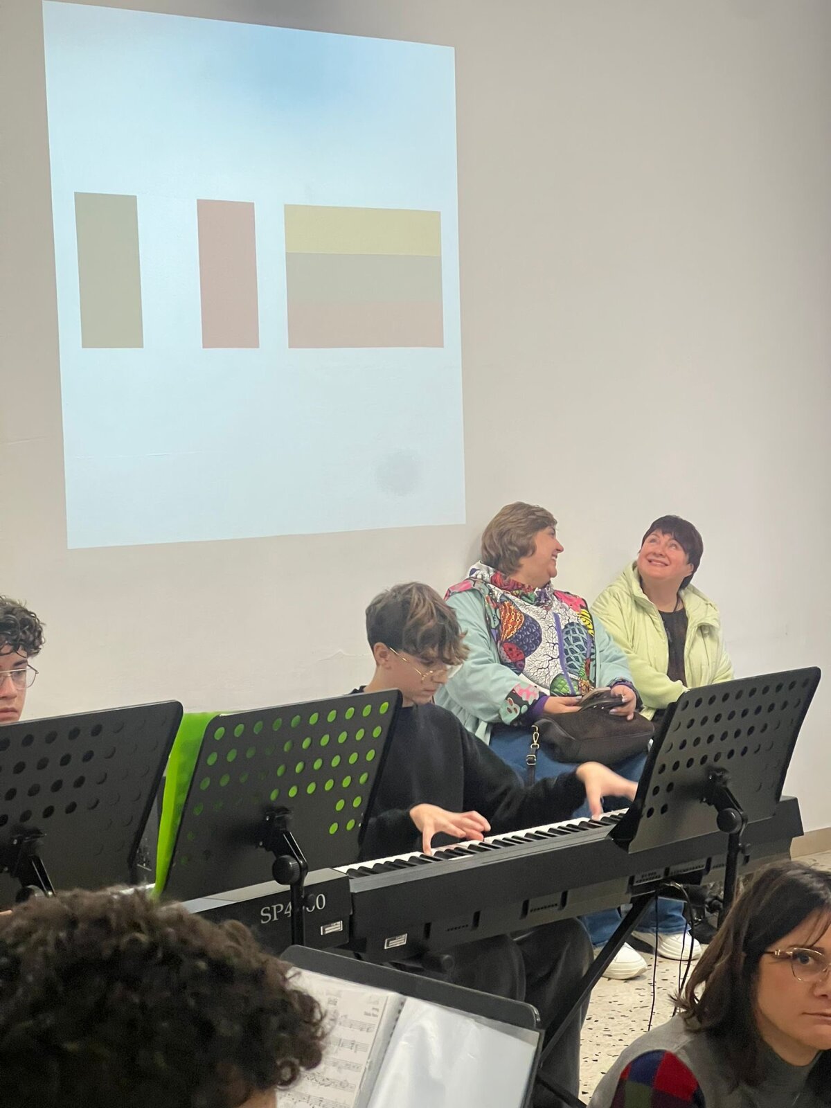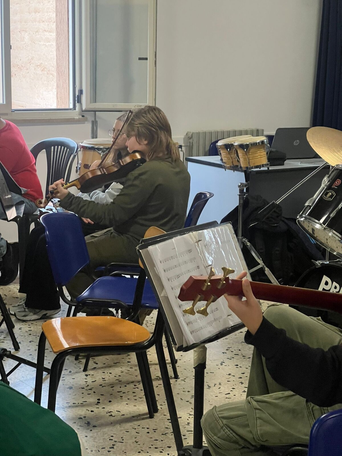 Vakare stebėjome mokyklos orkestro repeticiją. Žavėjo ne tik muzika, bet ir vaizdas: vienoje erdvėje darniai skleidėsi įvairių gebėjimų mokinių talentai. Tai sukūrė ypatingą bendrystės pojūtį.