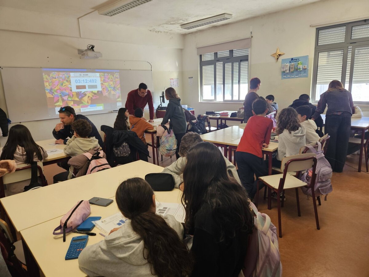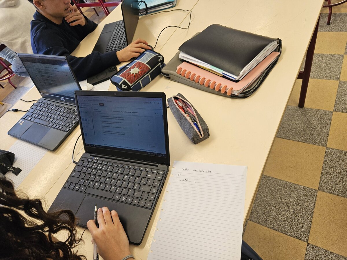 Trečioji stebėta chemijos pamoka 9 klasėje buvo rimta ir koncentruota. Mokiniai atliko interaktyvų testą naudodamiesi Intuitivo.pt programa. Technologijos čia padeda greitai įsivertinti žinias ir gauti grįžtamąjį ryšį.