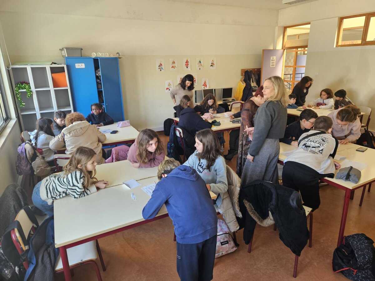 Antrasis užsiėmimas 5/6 klasėse maloniai nustebino. Į pamoką atėjo savanoriai korepetitoriai – tėvai, mamos, net močiutės. Jie padėjo mokiniams atlikti mokytojų parengtas užduotis, dirbo kartu su vaikais mažose grupėse. Tai puikus bendruomeniškumo pavyzdys, kai šeima tampa aktyvia ugdymo proceso dalimi.